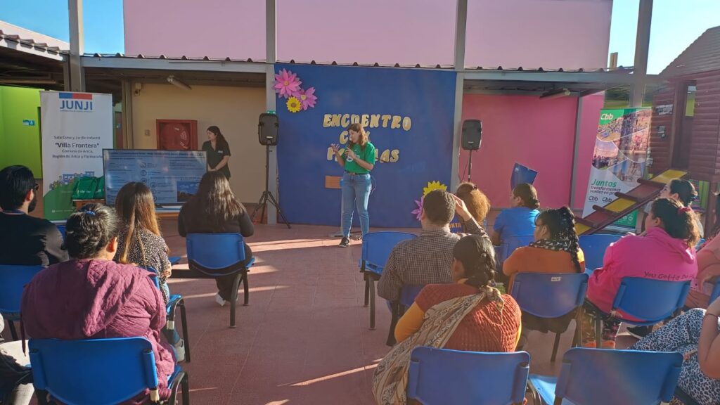 En el marco de las actividades del Encuentro con las familias, organizado por el Jardín Junji de Villa La Frontera de Arica, representantes de Cbb compartieron con las familias y el equipo pedagógico del jardín infantil. Además, se habilitó un espacio específico para la interacción y la distribución de los útiles escolares, que fueron recibidos con entusiasmo por los pequeños alumnos. Además de la entrega de material, la jornada fue una oportunidad para explicar la mano de obra de la empresa y cómo sus operaciones buscan contribuir al bienestar de las comunidades donde están presentes. La participación en la actividad completa permitió una interacción más profunda con el equipo pedagógico, quienes compartieron los hitos y la visión de la unidad educativa.