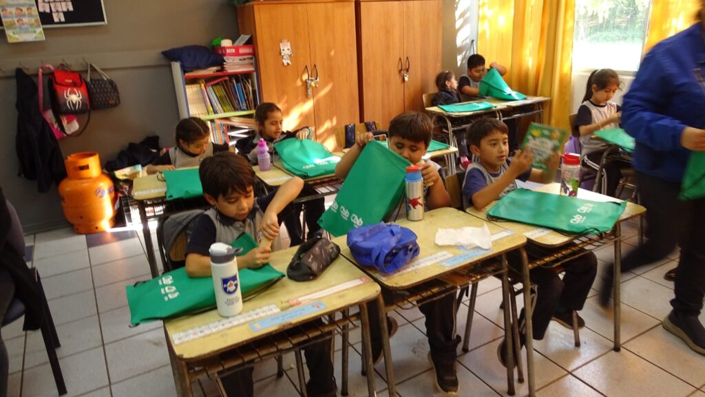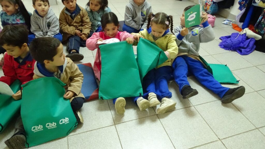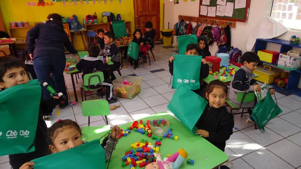 Los jardines infantiles beneficiados fueron Villa La Frontera en Arica con kits para los preescolares y Escuela La Purísima, Escuela Manuel Rodríguez de La Laguna y Escuela Susana Montes en Teno, donde se entregaron kits a pre-kinder; kinder; primero y segundo básico.