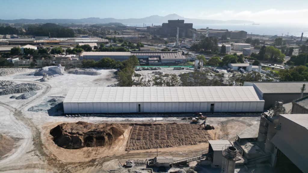 El proyecto, que inició operaciones este mes de febrero de 2026, busca optimizar los procesos de distribución y asegurar el abastecimiento de esta materia prima esencial para la producción de cemento. La nueva instalación destaca por un diseño de vanguardia que combina ligereza y resistencia. Se trata de un galpón de estructura de aluminio con cubierta de PVC, una solución de ingeniería que permite un montaje eficiente sin sacrificar la protección del material.