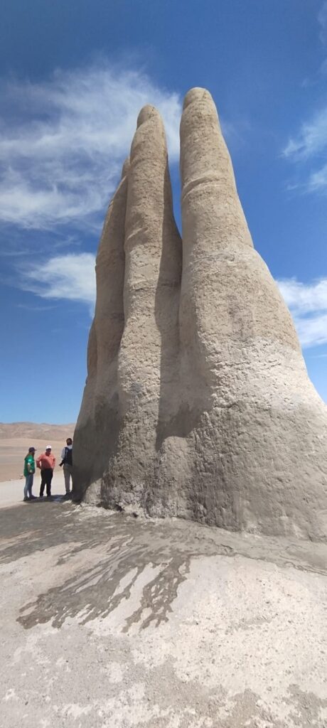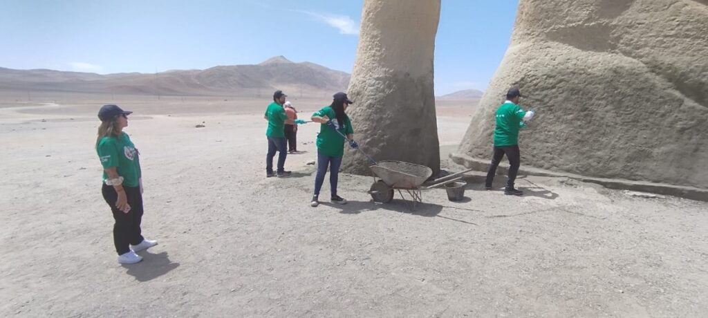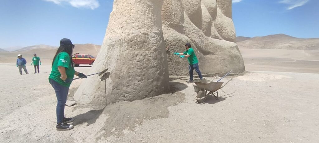 Un grupo de voluntarios de Cbb junto a la Corporación PROA, realizaron un nuevo operativo de limpieza y mantención en la reconocida escultura “La Mano del Desierto”.