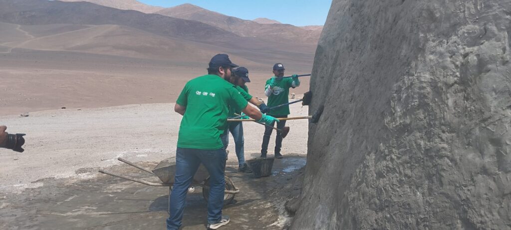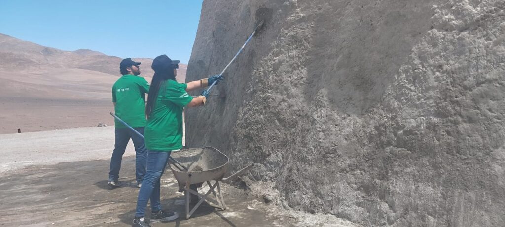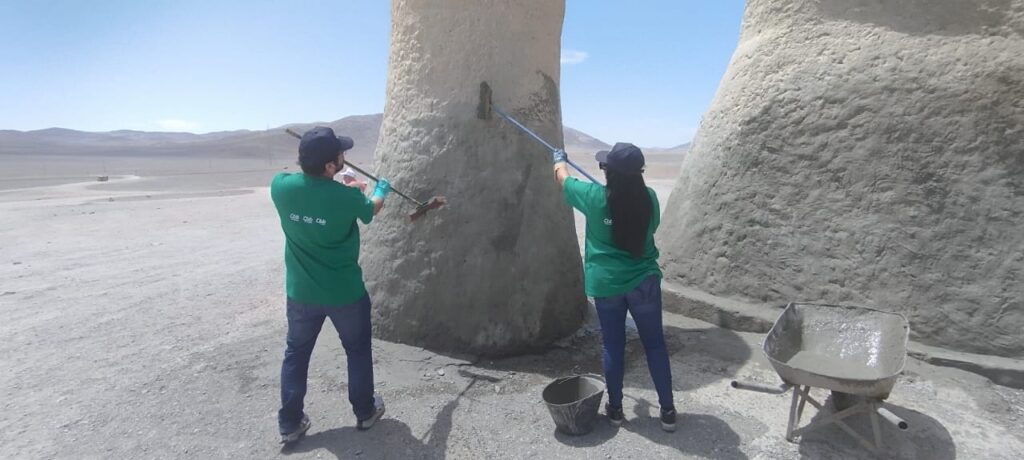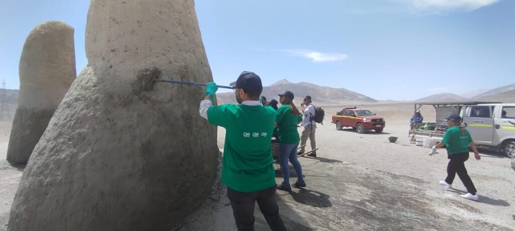 Integrantes del directorio de la Corporación Pro Antofagasta junto a trabajadores voluntarios del Grupo CBB (Cbb Cales y Cbb Cementos) se reunieron en la escultura, ubicada a 75 kilómetros al sur de Antofagasta, con el propósito de reparar los daños ocasionados por visitantes que rayan, pintan y ensucian este ícono del patrimonio turístico de la región de Antofagasta.